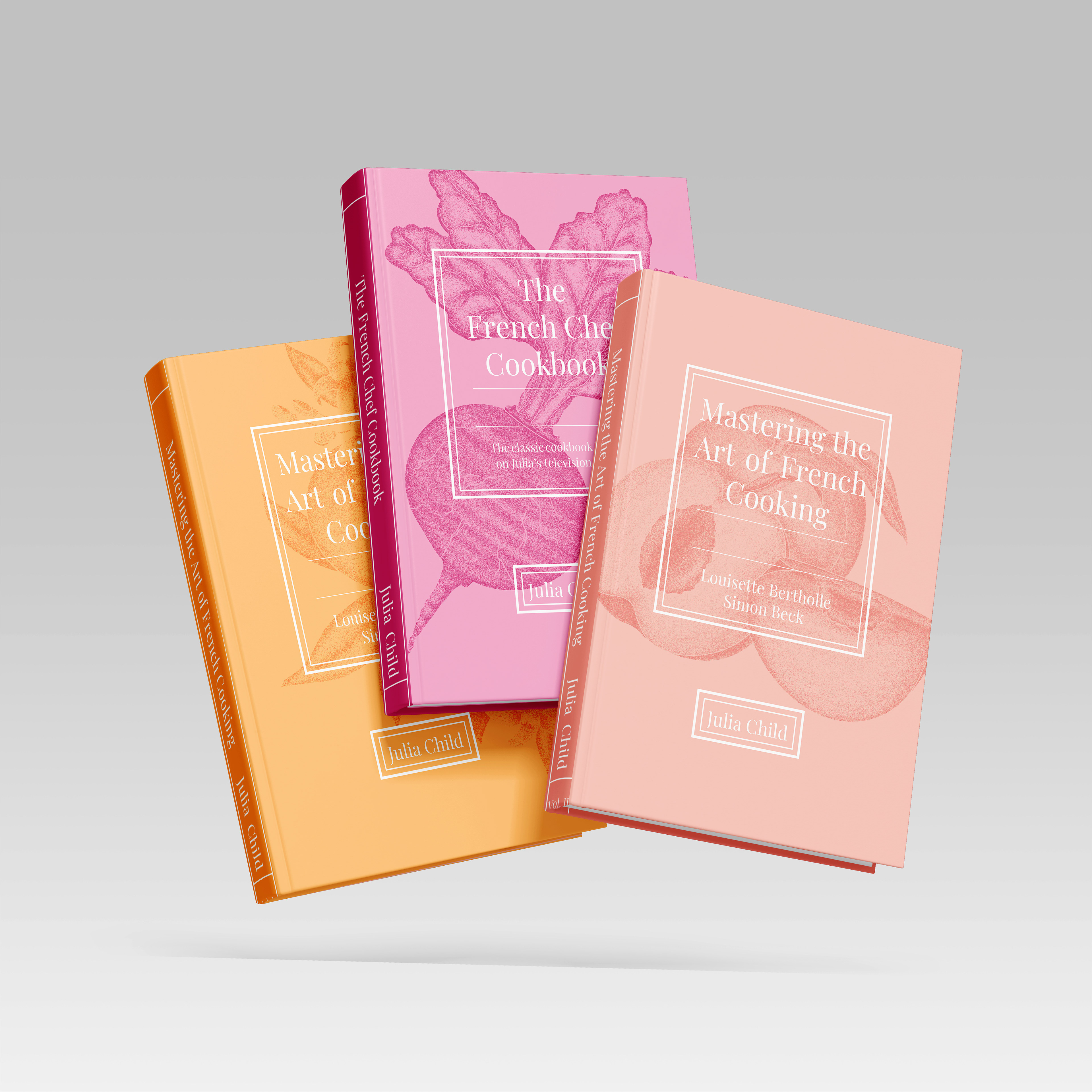 For this project, I redesigned a set of three Julia Child cookbooks, creating a cohesive and visually engaging collection. My goal was to appeal to both a younger audience and a more mature demographic by blending modern design with a touch of nostalgia. I drew inspiration from the original book illustrations, incorporating familiar imagery to maintain a connection to Julia Child’s legacy. The final designs balance tradition and contemporary aesthetics, making the books more visually compelling while preserving their classic charm.