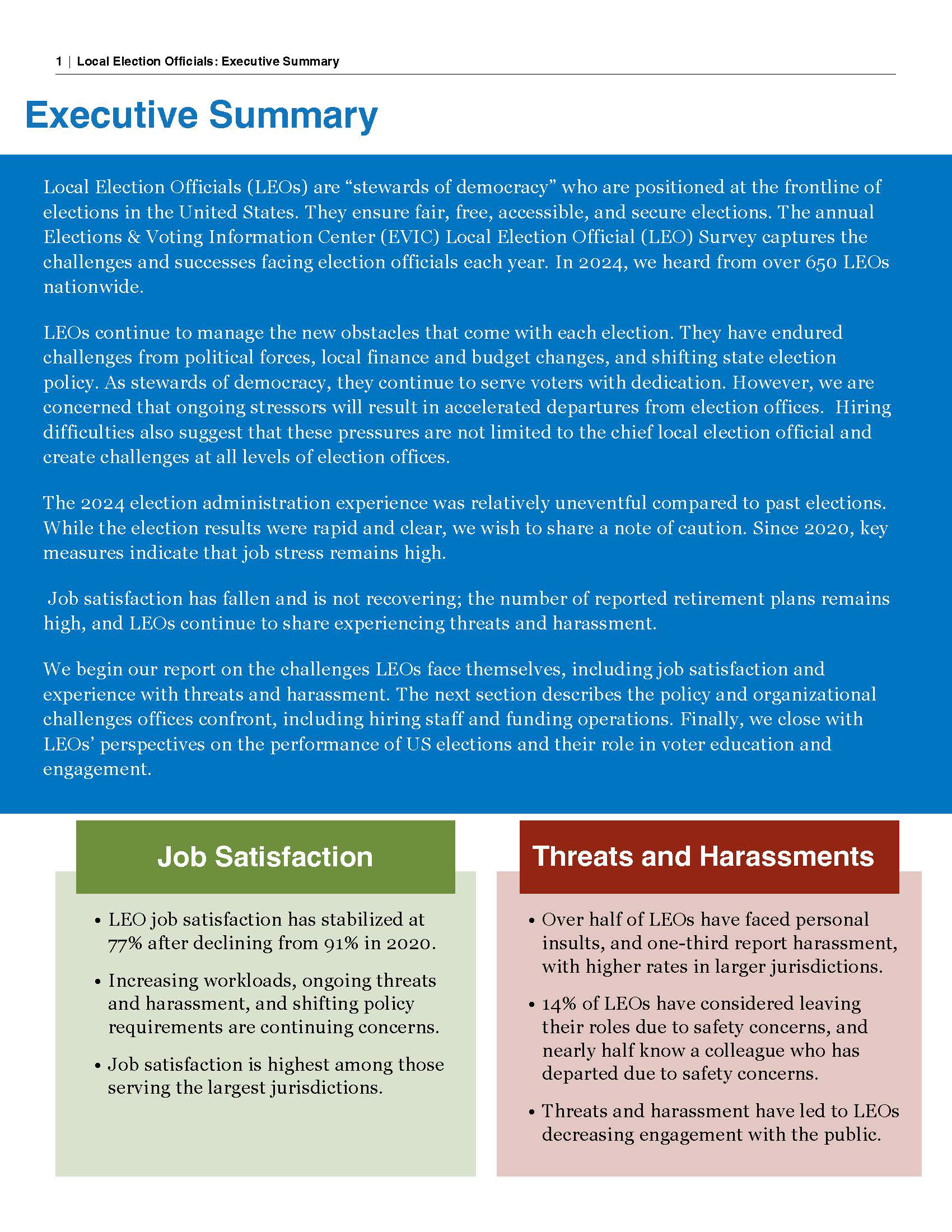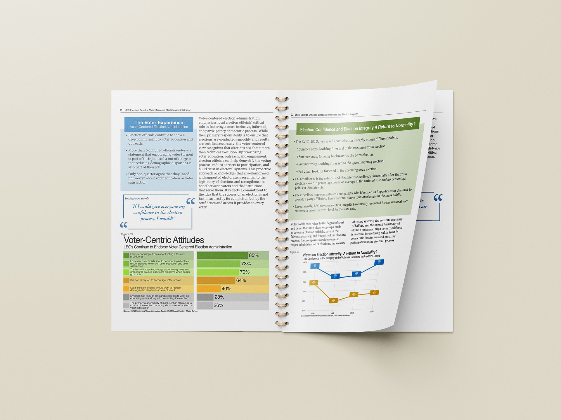 The Elections & Voting Information Center (EVIC) Local Election Official (LEO) Survey project allows LEOs to have a voice in local, regional, national, and international discussions about electoral integrity, administration, and reform in America. The LEO Survey is a vital resource for election administrators, policymakers, and researchers to better understand local election administration in the U.S. and the dedicated officials who deliver democracy to hundreds of millions of eligible voters. Our team included Research Director Paul Manson, Ph.D.; Founder and Director Paul Gronke, Ph.D.; Senior Communications Advisor Michelle Schafer; and myself as the Graphic Designer/Art Director.
